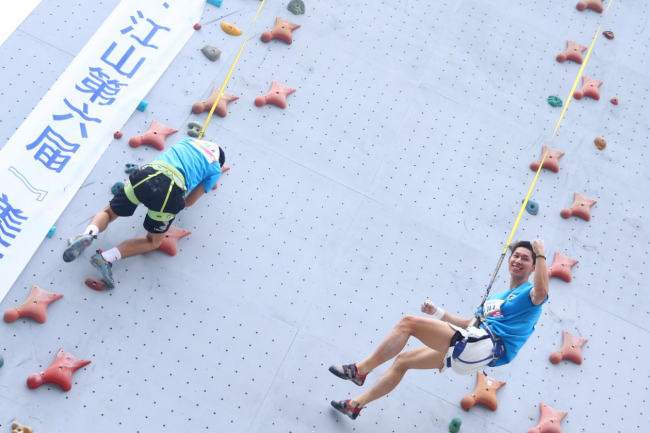 来自浙江衢州的刘鑫武已经是连续第四年参赛,他表示每一次来江山参赛都有不一样的感受,赛事组织越来越正规,赛项挑战逐年增大,队伍的攀岩成绩也在不断进步。他希望未来的赛事规模能够更大,能与更多来自全国各地的队伍交流经验,在竞技比拼中共同享受攀岩的乐趣。