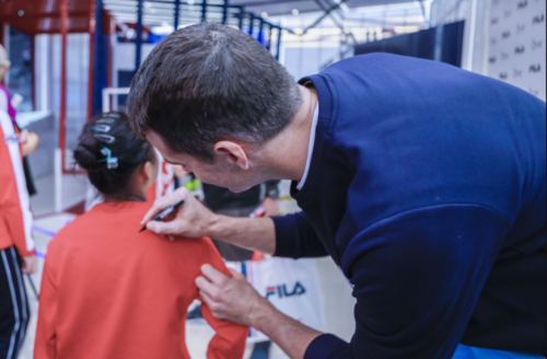 刚刚获得今年郑洁杯青少年网球赛冠军的两位小球员白文博和谢雨桐亦来到本次FILA球员日活动中。作为当下顶尖的网球运动员前辈,约翰·伊斯内尔现场亲自挥拍指导两位小球员,交流传授网球训练技巧与心得,给中国网球新生力量送上鼓励与祝福。