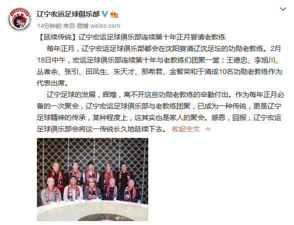 【延续传统】辽宁宏运足球俱乐部连续第十年正月宴请老教练