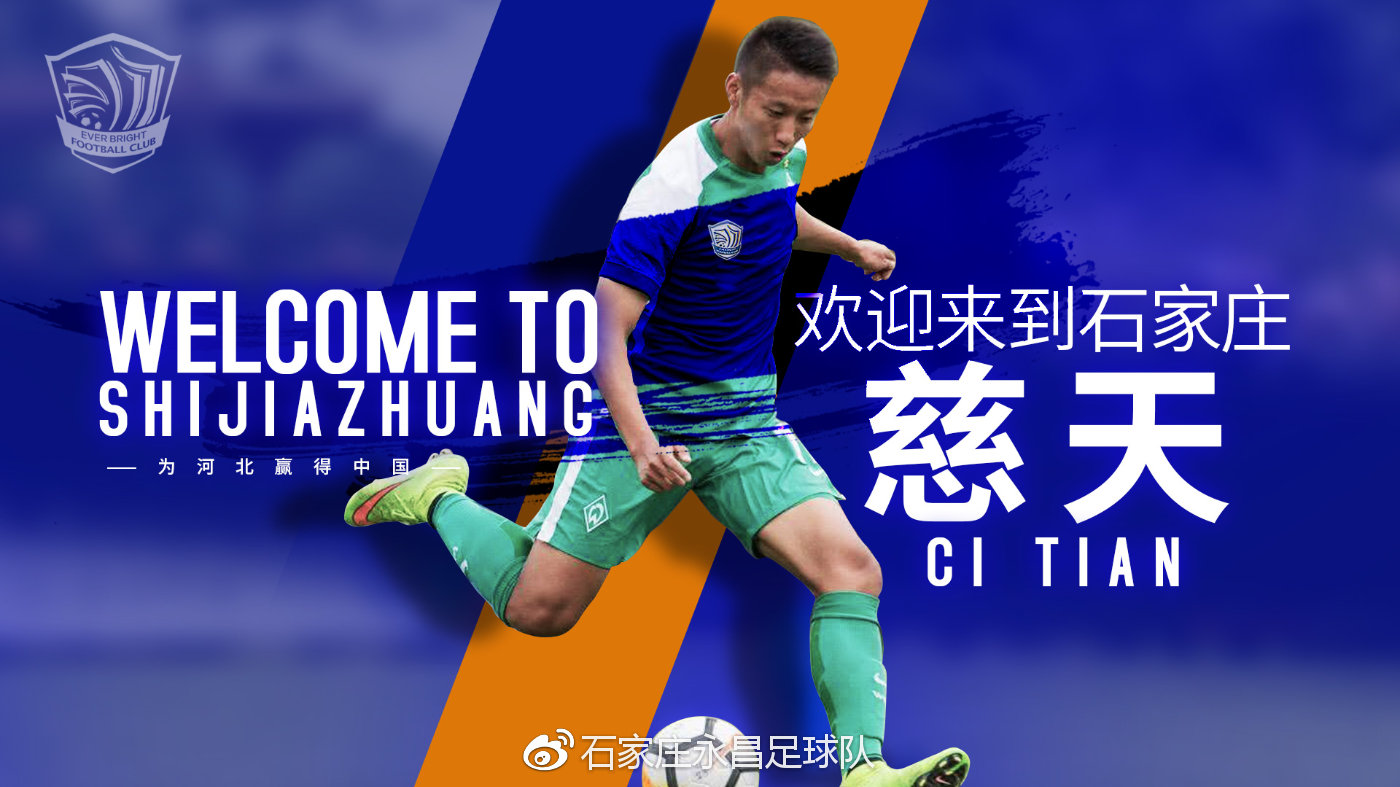 经与球员本人协商一致,慈天加盟石家庄永昌足球俱乐部,慈天出生于1996年10月12日,河北保定人,可以胜任中前场多个位置,2016年通过试训脱颖而出加盟了德甲云达不莱梅,跟随云达不莱梅U23队参加德丙联赛,2017/18赛季跟随不莱梅U21队在大区联赛中首发18场,获得5个进球和5个助攻。慈天速度快,且持续逼抢的意识和能力出色,慈天目前已随一线队在塞浦路斯进行海外拉练,他的加盟将在新赛季丰富球队中U23球员的选择,期待勤勉低调的他能够持续进步,为俱乐部做出更多贡献。