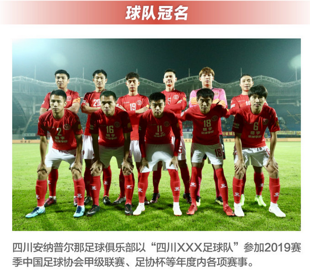 如果球队出售了冠名权,安纳普尔那将以;四川XXX足球队的名义参加2019中甲联赛和足协杯等赛事。而球队主场都江堰凤凰体育场如果出售冠名权,将更名为;XX竞技场。