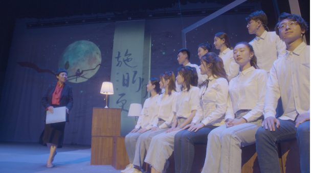 浙江传媒学院的话剧《施昕更》向观众展示了施昕更先生的一生,整个舞台是一堂公开课,围绕着“五千年到底有多遥远”的提问,在历史与现实场景中自由切换。以习总书记提出的“文化自信”为导向,用话剧的形式回溯历史,让年轻人看到先贤们是如何守护住历史、守护住文化的根脉。本剧也集中体现了浙江传媒学院播音主持艺术学院的师生们在教学上的深度和广度。