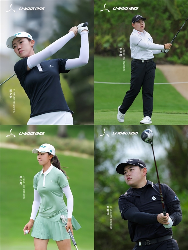 LI-NING1990此次25春夏系列以简约松弛的设计语言,诠释了运动时尚的新定义,配合干练的廓形剪裁,将活力与优雅完美融合,为高尔夫运动员在比赛中提供了舒适与专业的助力,展现自信风采。殷小雯身着LI-NING1990浅绿与黑色系短袖polo衫搭配百褶短裙,在绿意盎然的果岭之上增添了一抹别样的风采,在赛场上优雅地挥杆发球,每一个动作都充满力量与美感。而曾莉棋则选择LI-NING1990黑白色系短袖polo衫与黑色长裤,搭配三角标腰带,在现场多变的天气条件下,于竞技场中潇洒推杆,以超越年龄的沉稳表现与精湛技艺闪耀果岭。两位运动员都配备了Heritage 启承系列高尔夫鞋,让每一次挥杆瞬间都秉承完美支撑,将蹬地力量转化为爆发动能,助力运动员实现更远距离的精准击球。在本届蓝湾大师赛中殷小雯与曾莉棋全程展现了出色高尔夫选手的实力与风范,LI-NING1990也在比赛中见证了这两位高球小将帅气挥杆,收获成长与蜕变。